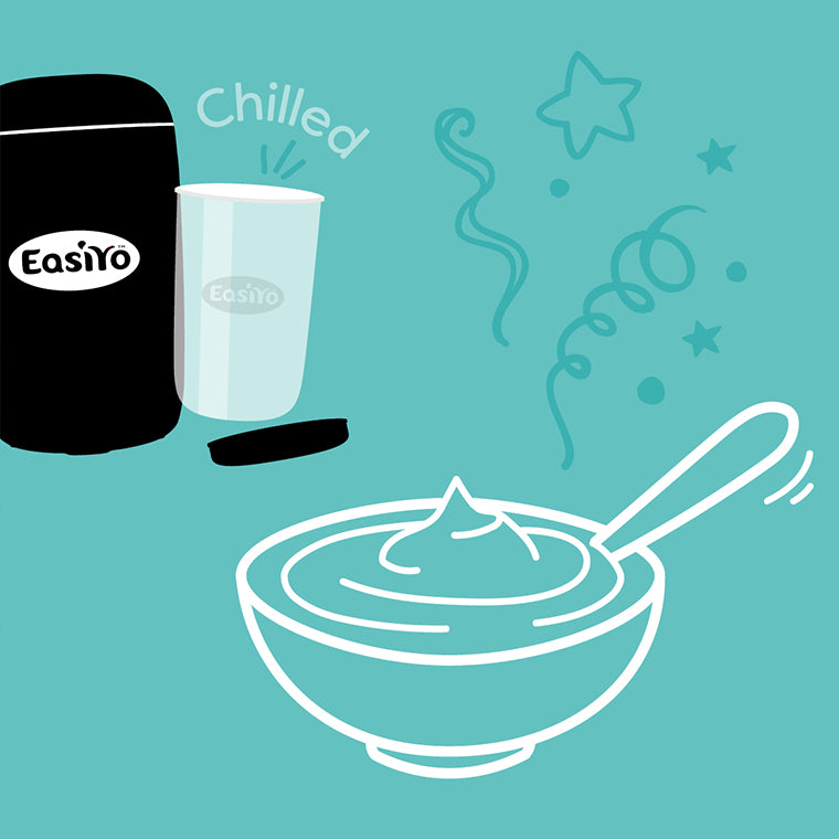 You’re all set, now simply wait for the magic to happen! Leave your yogurt maker on your kitchen bench and the yogurt will set after 8 - 12 hours (a little longer for protein yogurt). Most people simply leave it overnight and wake up to fresh homemade yogurt in the morning. You’re nearly there… before you dig in, chill it in the fridge for a few hours to complete the set.